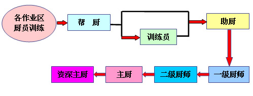 为提高厨务人员的专业技能及工作积极性,公司定期于每年举办两次厨艺晋升考试,分为帮厨晋升训练员、帮厨晋升助厨、助厨晋升一级厨师等不同级别的考试。参与人员需先通关笔试方可再进行术科考试。术科合格者公司颁发合格证书。